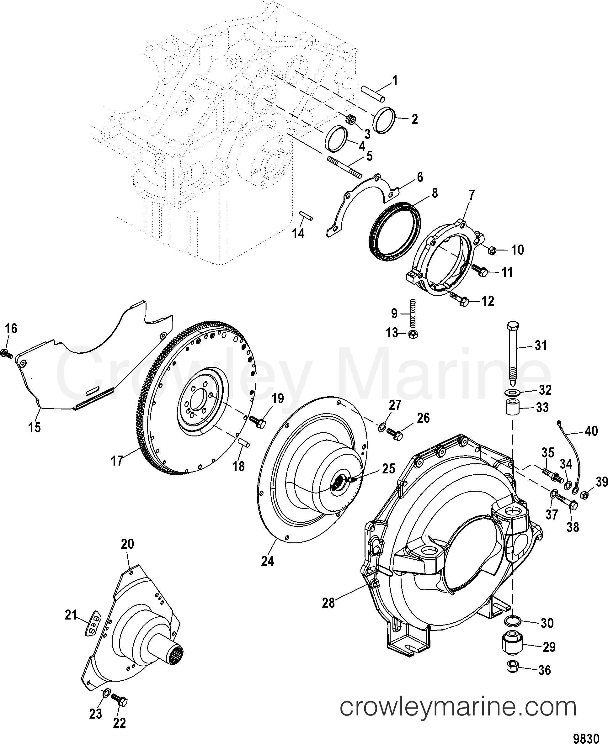 Cylinder Block Flywheel Housing And Rear Main Seal 1998 Stern Drive 350 Mag Alpha Mpi 44410pluu Crowley Marine